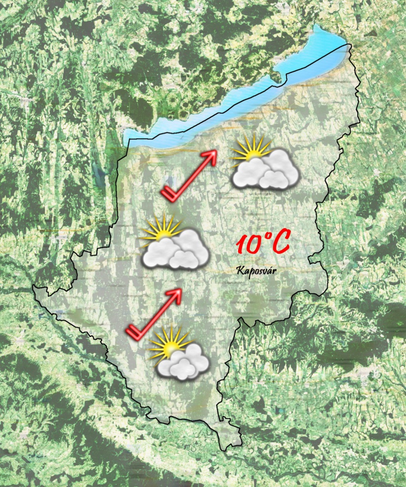 Szerda délután változóan felhős idő várható. Csapadék sehol sem várható. 10°C-ig melegszik a levegő és gyengén fog fújni a déli szél.