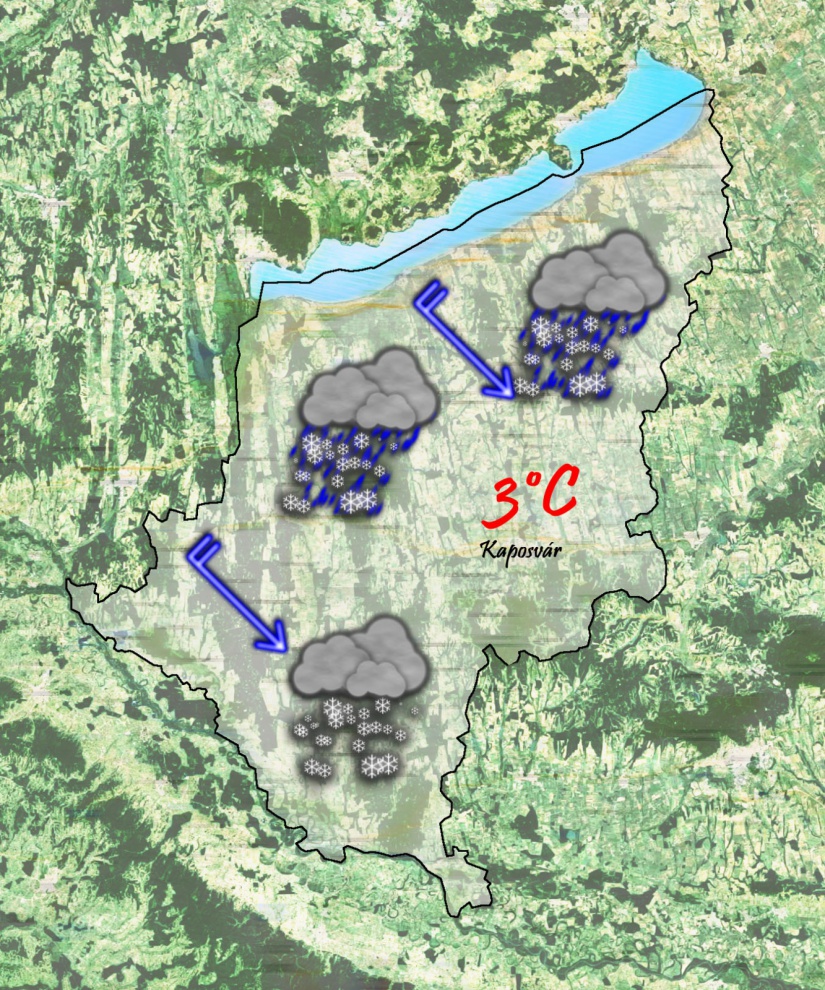Pénteken reggel 0°C-ig süllyed a hőmérséklet. Az érkező hidegfront behullámzik és emiatt egyre többfelé lehet eső, havaseső, havazás. Akár zivatar, sőt hózivatar sem kizárt a késődélutáni órákban. Csak 3-4°C-ig kúszik fel a hőmérő higanyszála. Élénk lesz az északnyugati szél.