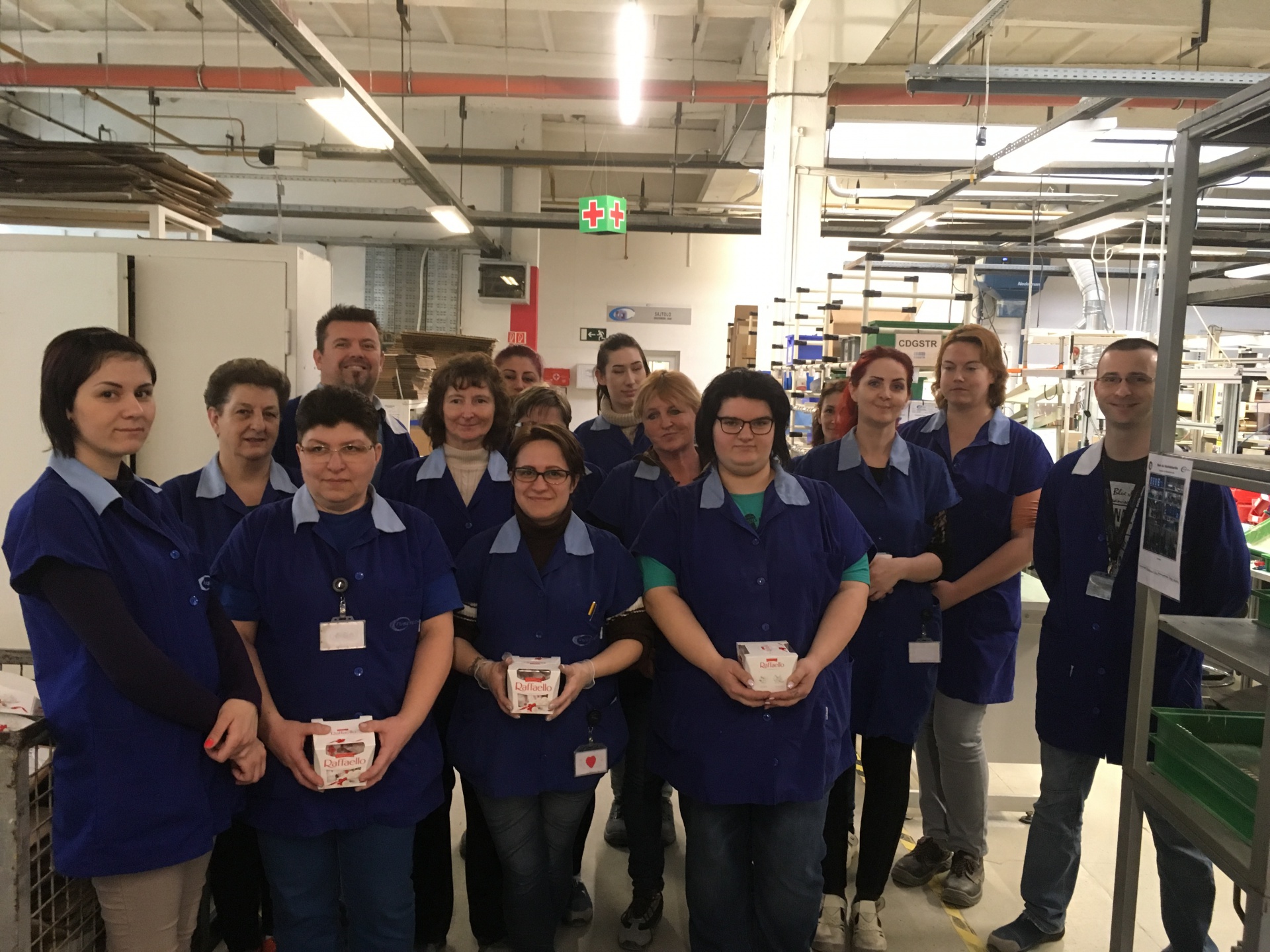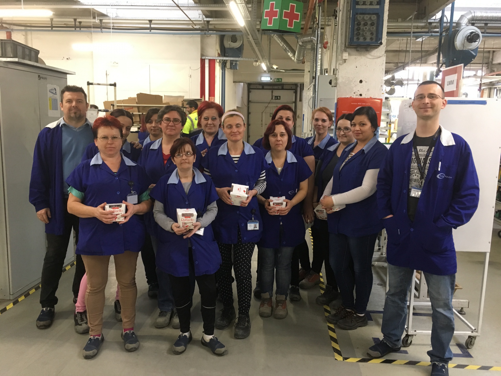Az irodai dolgozóknak bonbonnal kedveskedtek a vezetők délelőtt, majd ezt követően Peres Norbert, gyárigazgató és Puska Attila, termelés vezető körbejárták az egész gyárat és a termelésben dolgozó hölgyeknek egy kis köszöntő után egyesével átadták a finomságokat.
