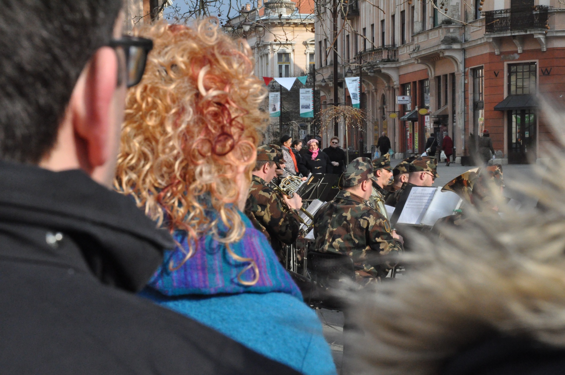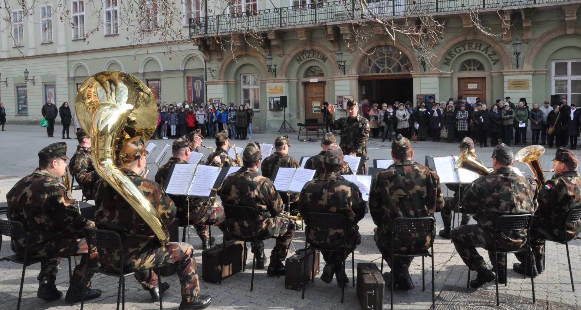 A Megyeháza előtt a műsort a Kaposvár Helyőrségi Zenekar nyitotta meg egy Bach válogatással.