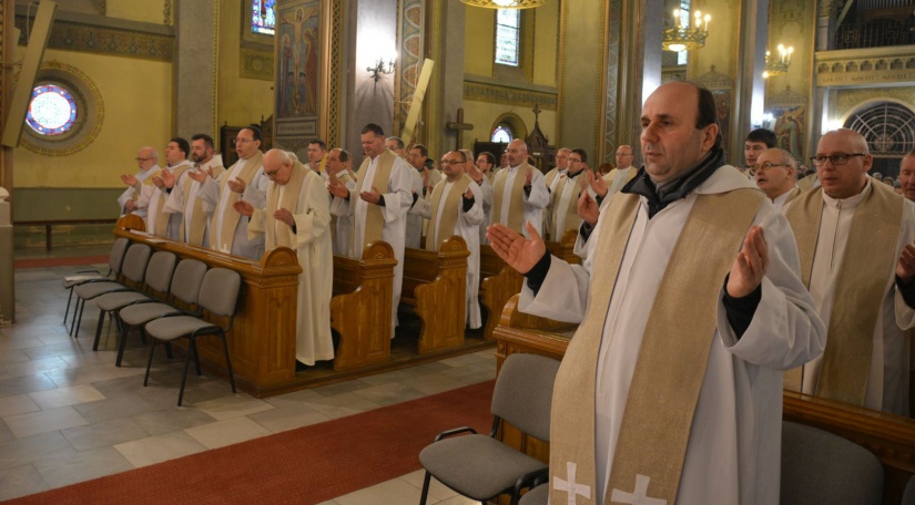 Varga László megyés püspök a Kaposvári Egyházmegye papjaival együtt krizmaszentelő misét tartott a Nagyboldogasszony Székesegyházban csütörtök délelőtt.