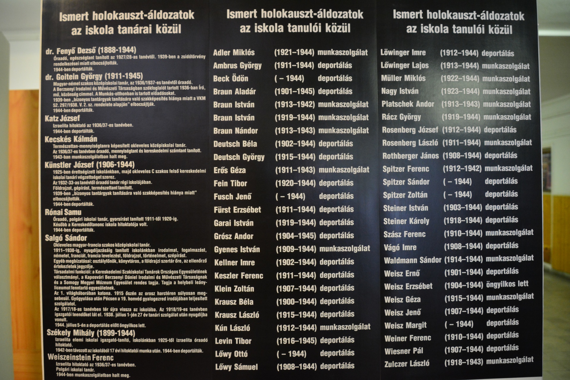 Azt gondolom, hogy a jövő a múltból gyökerezik, és fontos, hogy ebben a 107 éves iskolában tanuló diákok tisztában legyenek az intézmény múltjával, hiszen az áldozatok között sok olyan tehetséges diák és tanár volt, akik nélkül ez az iskola szegényebb lenne.”