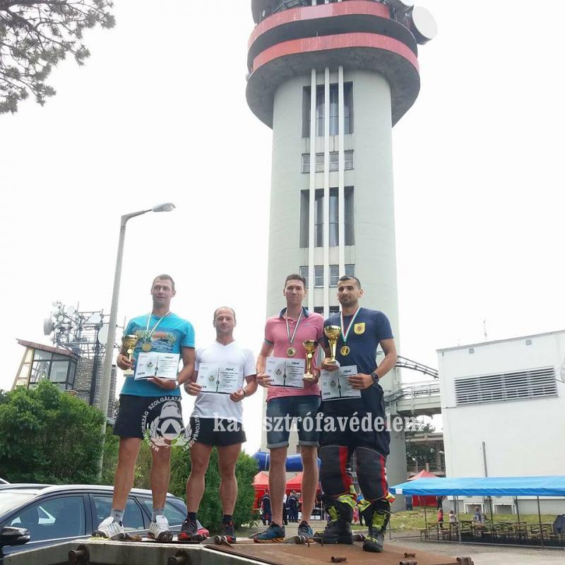 Ezeket a próbatételeket csak megfelelő fizikai és pszichikai felkészültséggel lehet teljesíteni – mondta Wéber Antal tűzoltó dandártábornok, a Somogy Megyei Katasztrófavédelmi Igazgatóság igazgatója ma Nagyatádon. A város két hivatásos tűzoltója évek óta lelkesen áll rajthoz a lépcsőfutó versenyeken és sikeresen teljesítik is a kihívásokat. A legutóbbi tatabányai megmérettetésen a 18-29 éves korosztályban Horváth Dániel a harmadik helyet szerezte meg, kollégája, Kiss János a 30-40 közötti férfiak kategóriájában a képzeletbeli dobogó tetejére állhatott fel. A bajnokok a pécsi toronyfutáson is próbára tették magukat, de a szomszédoknál már nem bízták a véletlenre az érmek sorsát. Párosban neveztek a versenyre és végül nem akadt legyőzőjük. Lelkiismeretes felkészülésüket és a somogyi tűzoltók hírnevének öregbítéséért végzett kitartó munkájukat jutalmazta ma Wéber Antal tűzoltó dandártábornok.