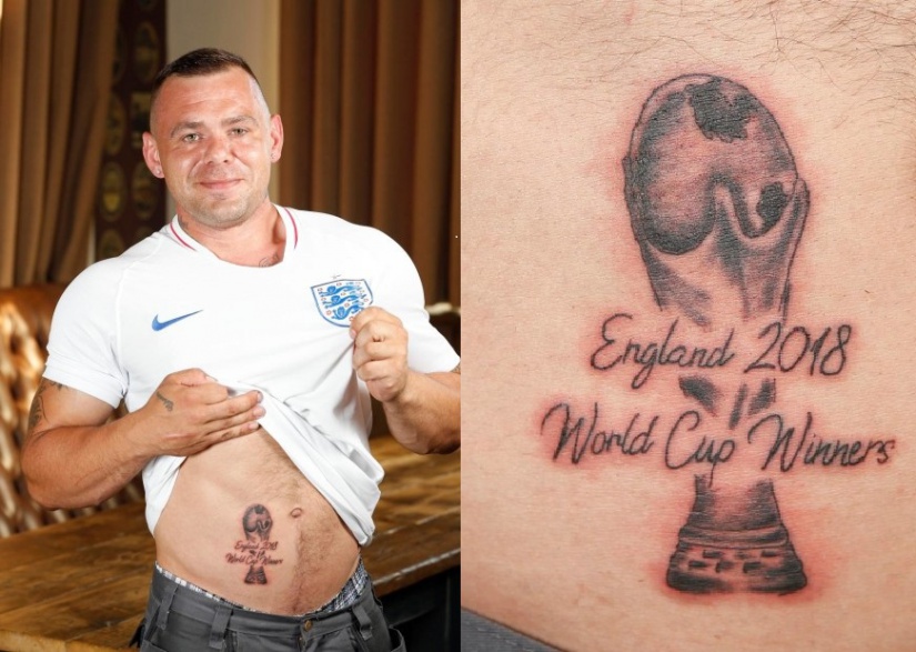 Miután Harry Kane és társai vasárnap 6-1-re verték Panamát, a lelkes szurkoló úgy döntött, tetováltat. Ugyan még csak két kör ment le a csoportkörből – Anglia már továbbjutott – de Richardson már most annyira magabiztos, hogy magára varratta: Anglia 2018 Világbajnok. Mindezt úgy, hogy a vb-trófea a háttér.