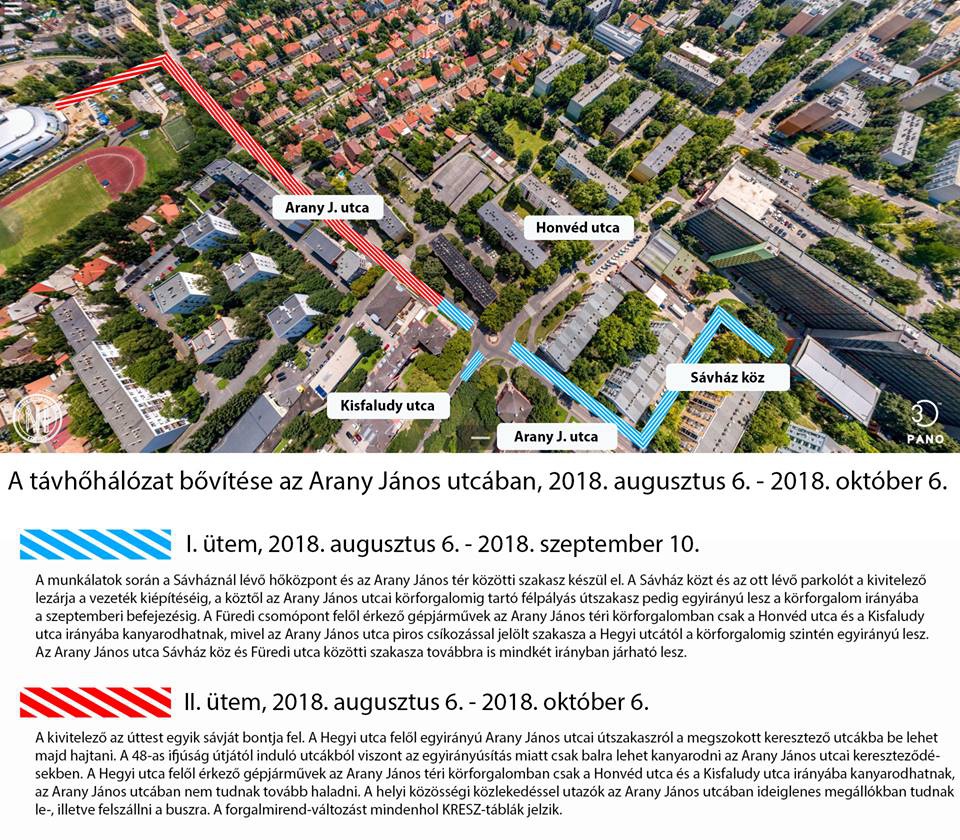 Az Arany János utca érintett szakaszán ezzel párhuzamosan közműkutatásokat végez a kivitelező és a forgalmi rend megváltozását jelző KRESZ-táblák kihelyezése is folytatódik. A távhőhálózat bővítésével újabb közintézményeket, egyebek között a megújuló színházat, orvosi rendelőket, iskolákat kapcsol be a távfűtésbe Kaposvár, hogy a költségek csökkentésével a következő években is az ország egyik legolcsóbb városa maradjon.