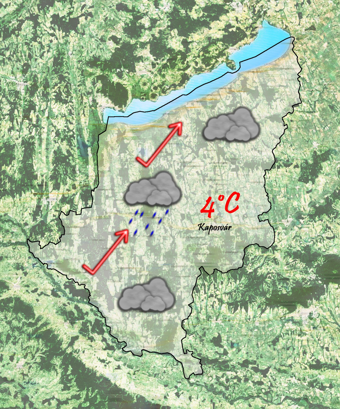 Vasárnap reggel -1 °C-ig csökken a levegő hőmérséklete. Napközben erősen felhős lesz az ég és előfordulhatnak kisebb záporok. Délutánra 4 °C-ig melegszik a levegő. A szél továbbra is délnyugat felől fog fújni.
