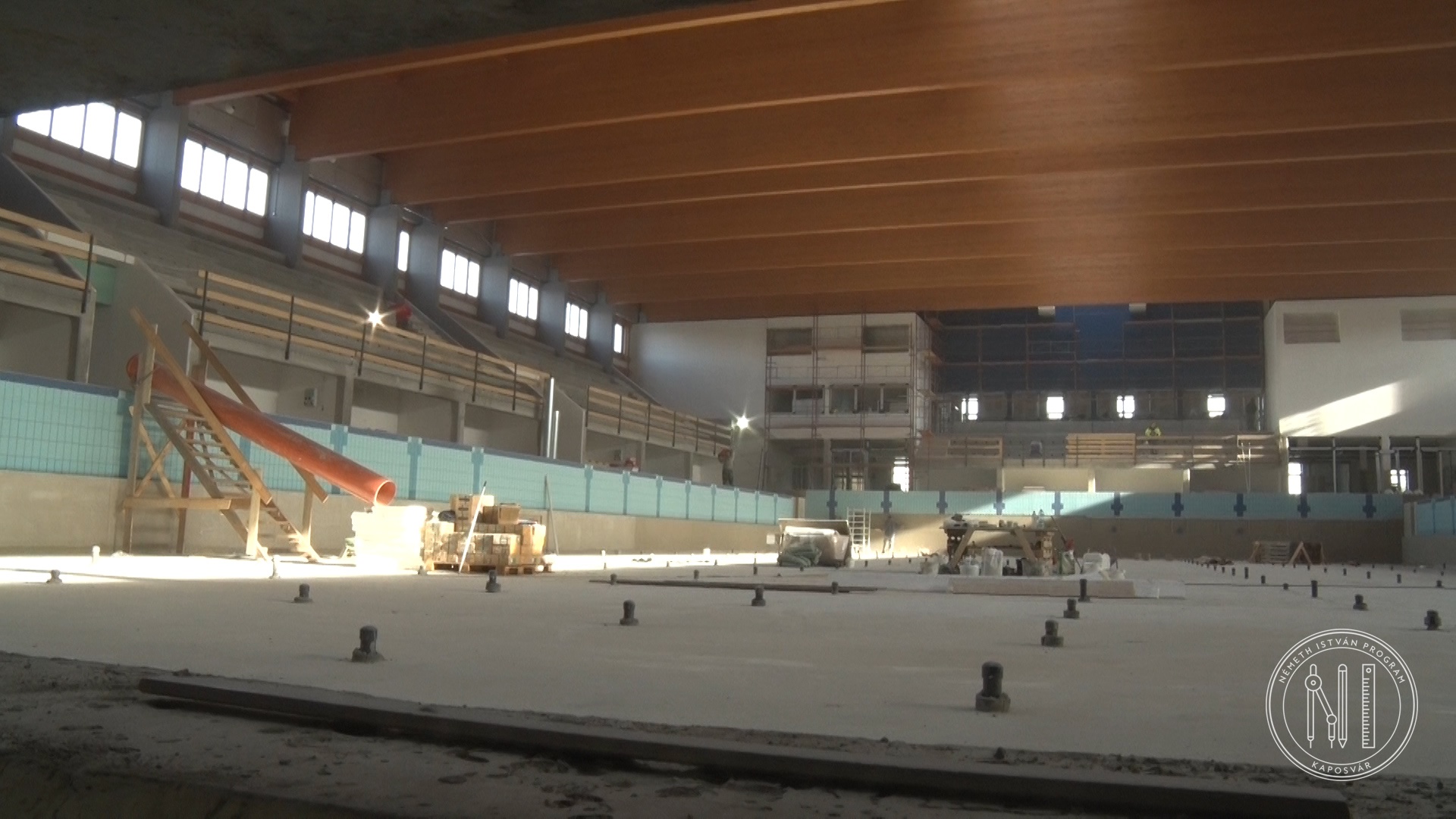 Jól haladnak a munkálatok a versenyuszoda építkezésén, derül ki a Németh István Program oldalán közzé tett videóból. A belső gépészeti munkák zajlanak, csempézik a medence oldalát és a mintaszékek is megérkeztek már. Hogy végül milyen színű ülőhelyek lesznek, később derül ki.
