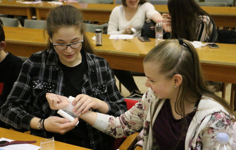 A program keretében a fiatalok megkezdték a közúti elsősegélynyújtó tananyag elsajátítását is.