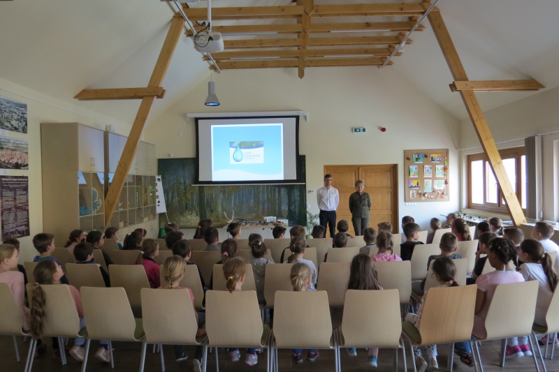 Az interaktív foglalkozáson a gyerekek beszélgethettek a látogatóközpont erdész és természetvédő munkatársával a víz fontosságáról, a fák felépítéséről, tulajdonságairól, felhasználási lehetőségeiről és megújíthatóságáról.