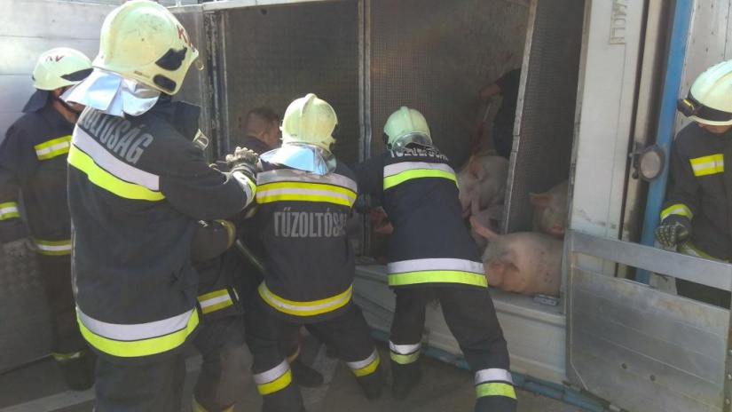 A jármű 190 sertést szállított, a jószágoknak több mint a felét sikerült megmenteni. Az állatok elszállítását követően a beavatkozó egységek kerekeire állították a felborult kamiont, majd megszüntették a forgalmi akadályt. A négy és fél órán át tartó műszaki mentést a katasztrófavédelmi műveleti szolgálat irányította.