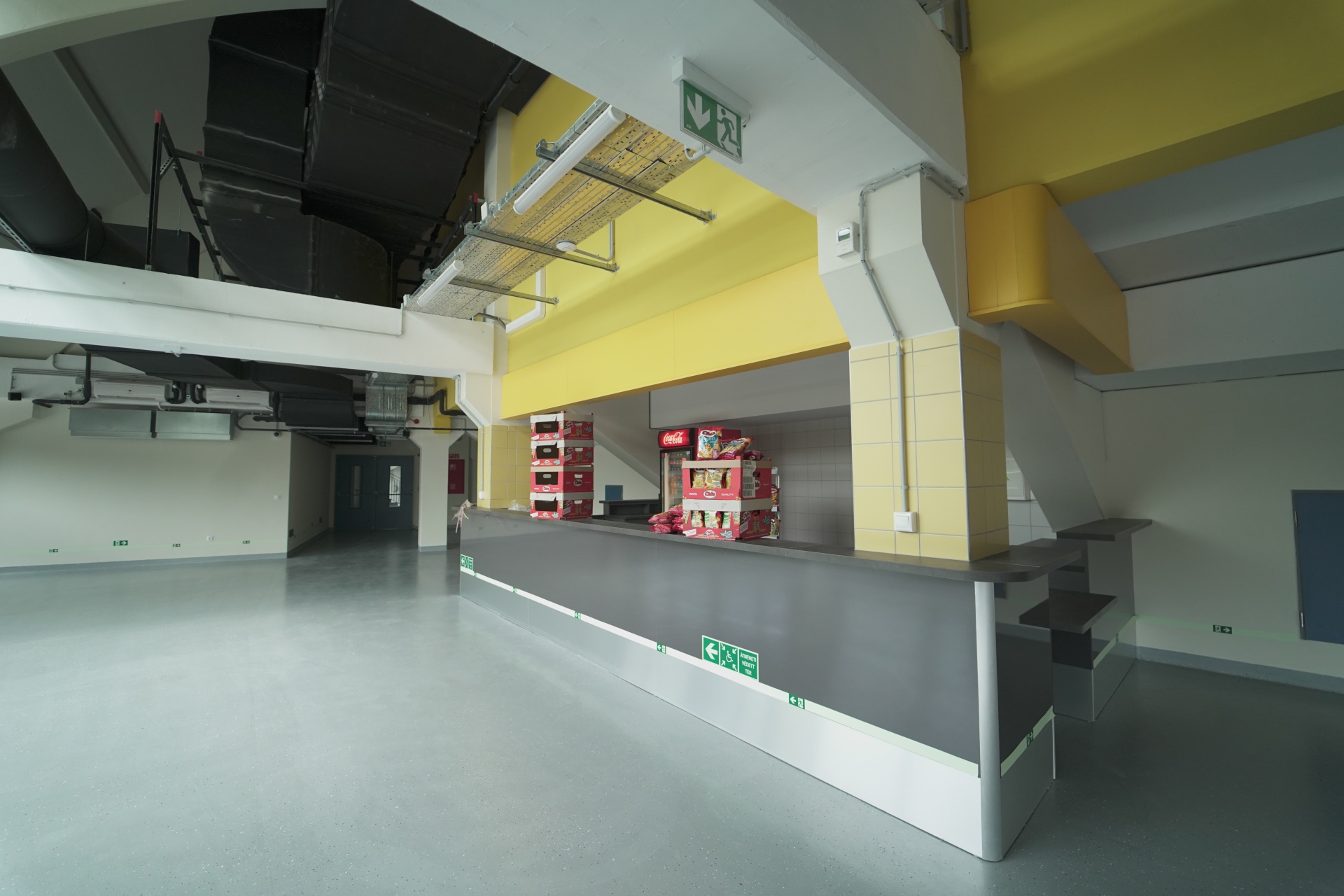 A tömeget 7 büfésziget szolgálja ki az épület különböző pontjain.