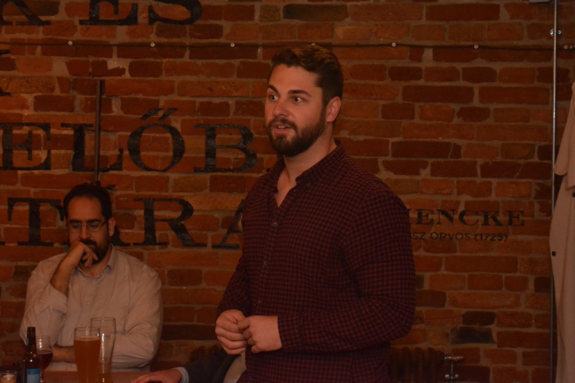 A szerda esti programot Csuvár Ádám a Kaposvári Egyetem GTK-Módszertani Intézetének tagja nyitotta meg, aki egyébként a program ötletgazdája is Kaposváron, bár mint mondja, az alapötlet nem új keletü, mégis kihívás volt, hogy Kaposváron kimozdítsanak egy egyetemi előadást a megszokott környezetből.