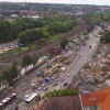A felvételen jól látható, hogy már több hídpillér illetve az irodaház falai is állnak már.