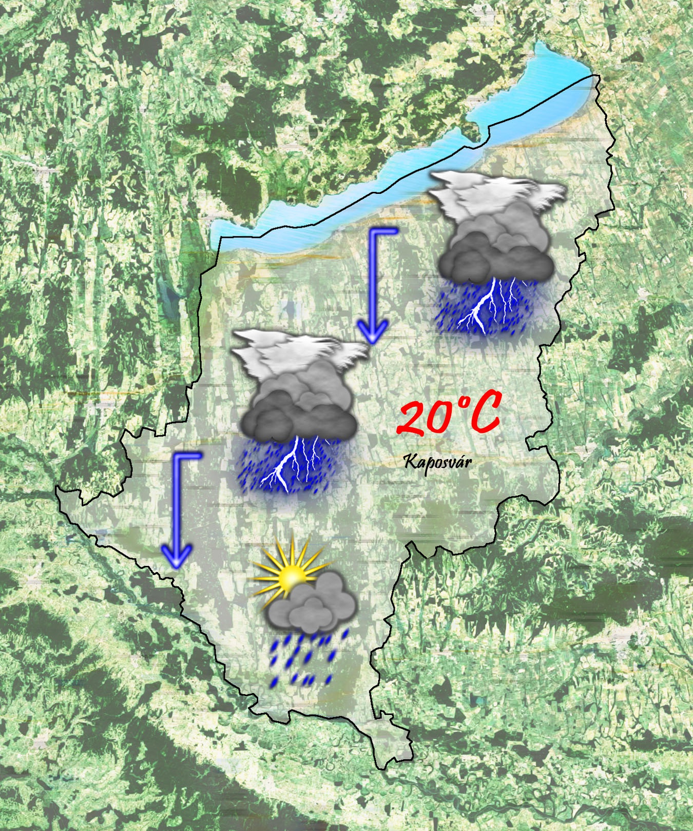Péntek napközben erősen felhős lesz az ég és 20 °C-ig emelkedik a hőmérséklet. Gyenge, olykor mérsékelt lesz az északi szél. Bármikor lehet zápor, zivatar, főként a délutáni órákban.