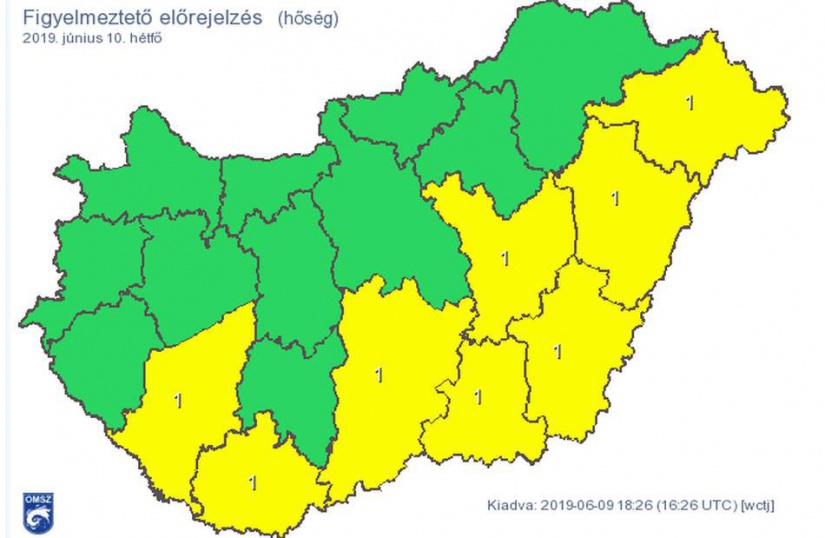 Baranya, Bács-Kiskun, Békés, Csongrád, Hajdú-Bihar, Jász-Nagykun-Szolnok, Somogy és Szabolcs-Szatmár-Bereg megyére adtak ki figyelmeztetést. Ezekben a megyékben a középhőmérséklet 25 Celsius-fok felett alakulhat.