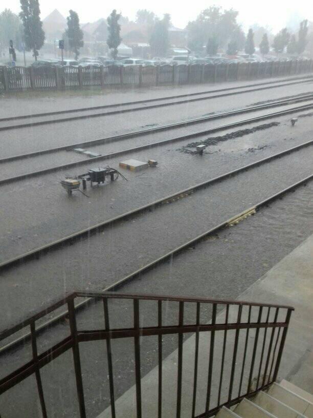 A Hírek.ma információi szerint a helyi vasútállomás sorompókezelője vette videóra a vágányokat elárasztó villámárvizet.