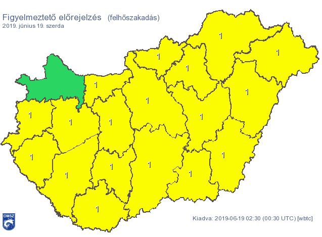 Heves zivatar kialakulásához – melyben a szélrohamok esetleg meghaladhatják az óránkénti 80-90 kilométeres sebességet, illetve a jégméret a 2-3 cm-t – az Alföldön, illetve középső országrészben mutatkoznak jobb feltételek.