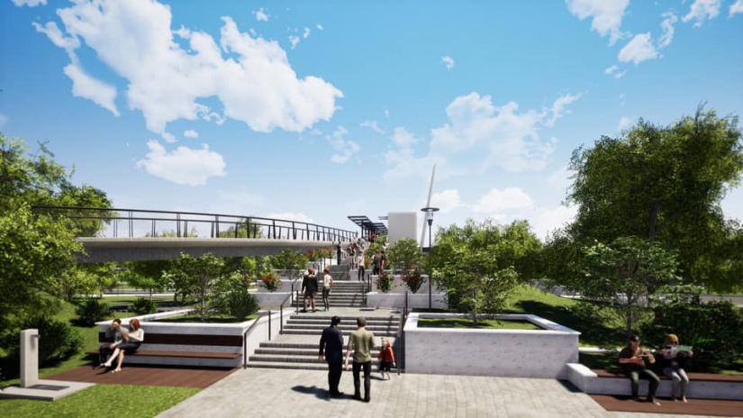 A munkálatokat vágányzár mellett végezték a szakemberek. Hamarosan meghozzák Budapestről a fő tartószerkezet további elemeit is, amelyek összeszerelésével elkészül az 50 méter magas pilon. A függesztett híd 8 méter széles és több mint 200 méter hosszú lesz, a teljesen megújuló Petőfi tértől egészen a Kapos partjáig ér majd. Hídfőin és a busztársaságok közös utasforgalmi irodájánál liftek segítik az idősek közlekedését, emellett természetesen lépcsőn és rámpán is feljuthatunk majd a hídra.