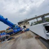 Az eddigi hídelemeket egy 250 tonnás, illetve egy 500 tonnás daru segítségével helyezték az ideiglenes támasztékokra. A munkálatokat a vasúti pálya felett végzték, vágányzár mellett.