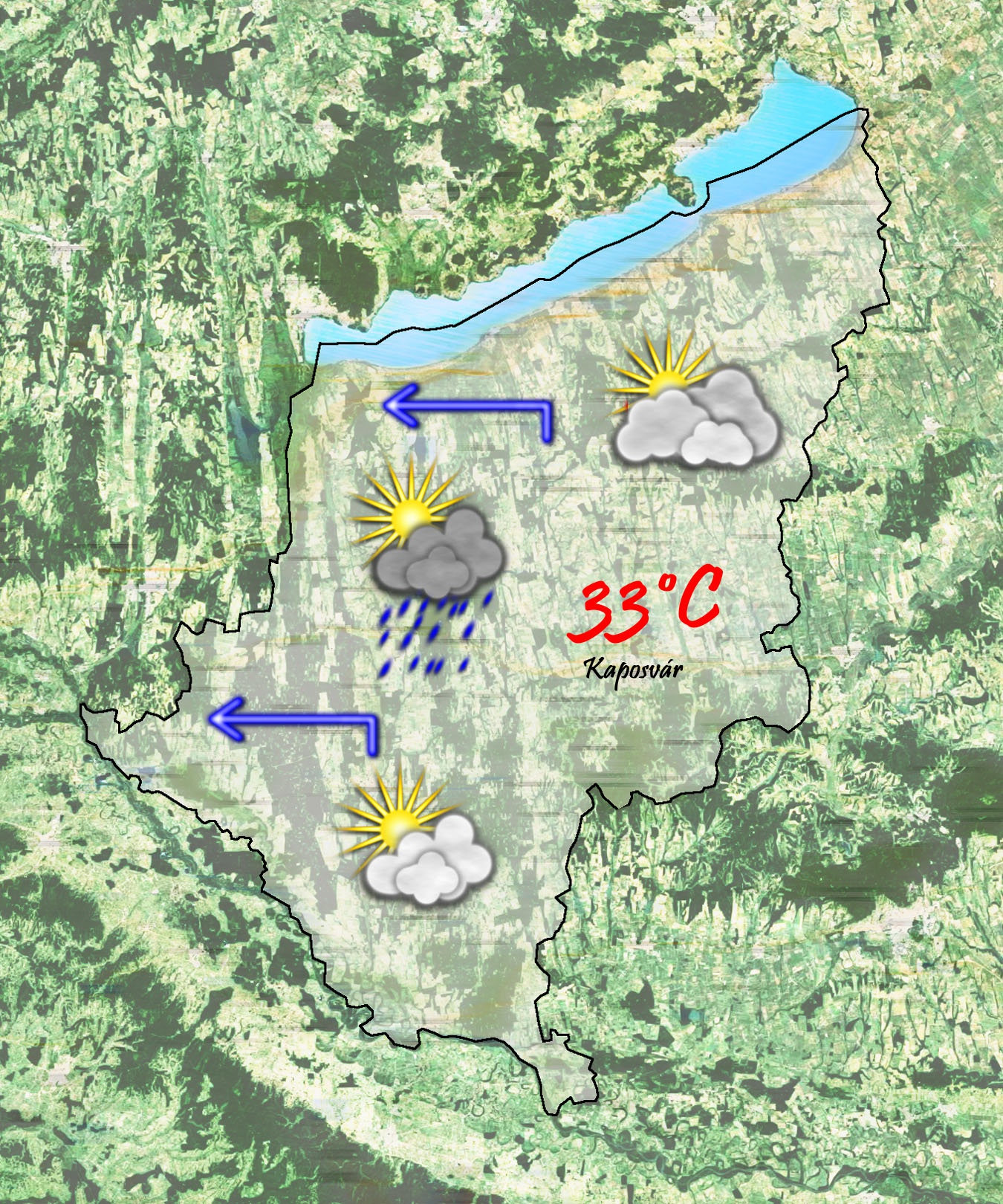 Eseménytelen meleg nyári idő várható felhőátvonulásokkal a hétvégén. Középtávú előrejelzés időjósunktól Kaposvár és környékére.