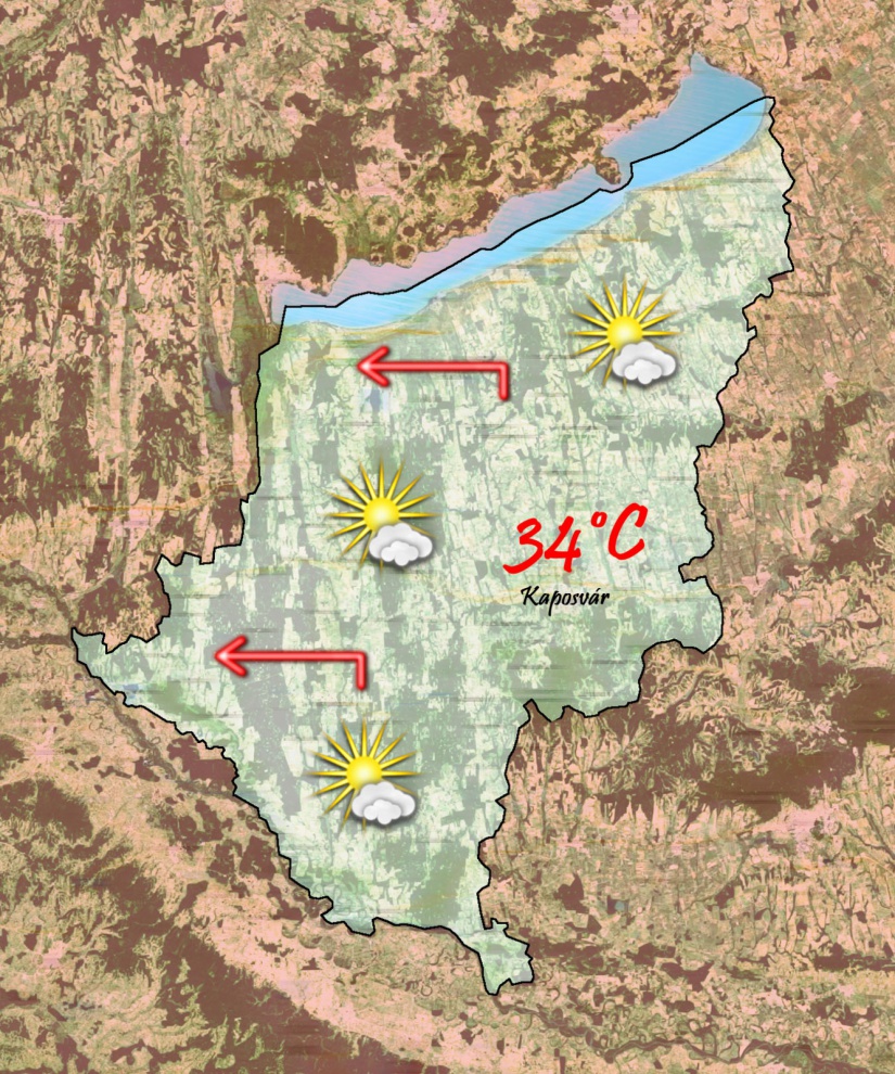 Szombat reggelre gyengén felhős lesz az ég és 17 °C-ig csökken a hőmérséklet. Délután a gyengén felhős ég mellett meglehetősen meleg idő várható. A 34 °C-ot is elérheti a hőmérséklet. Gyenge keleti szél fúj majd.