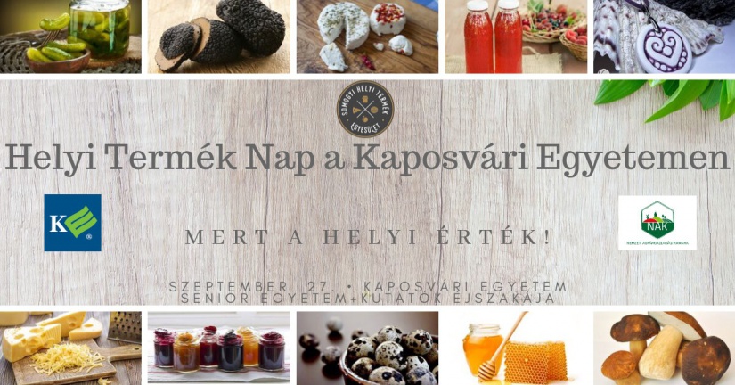 A Kutatók Éjszakája és a Senior Egyetem kísérőprogramjaként Helyi Termék Napot szervez szeptember 27-én, pénteken a Kaposvári Egyetem a Nemzeti Agrárgazdasági Kamara és a Somogyi Helyi Termék Egyesület közreműködésével.