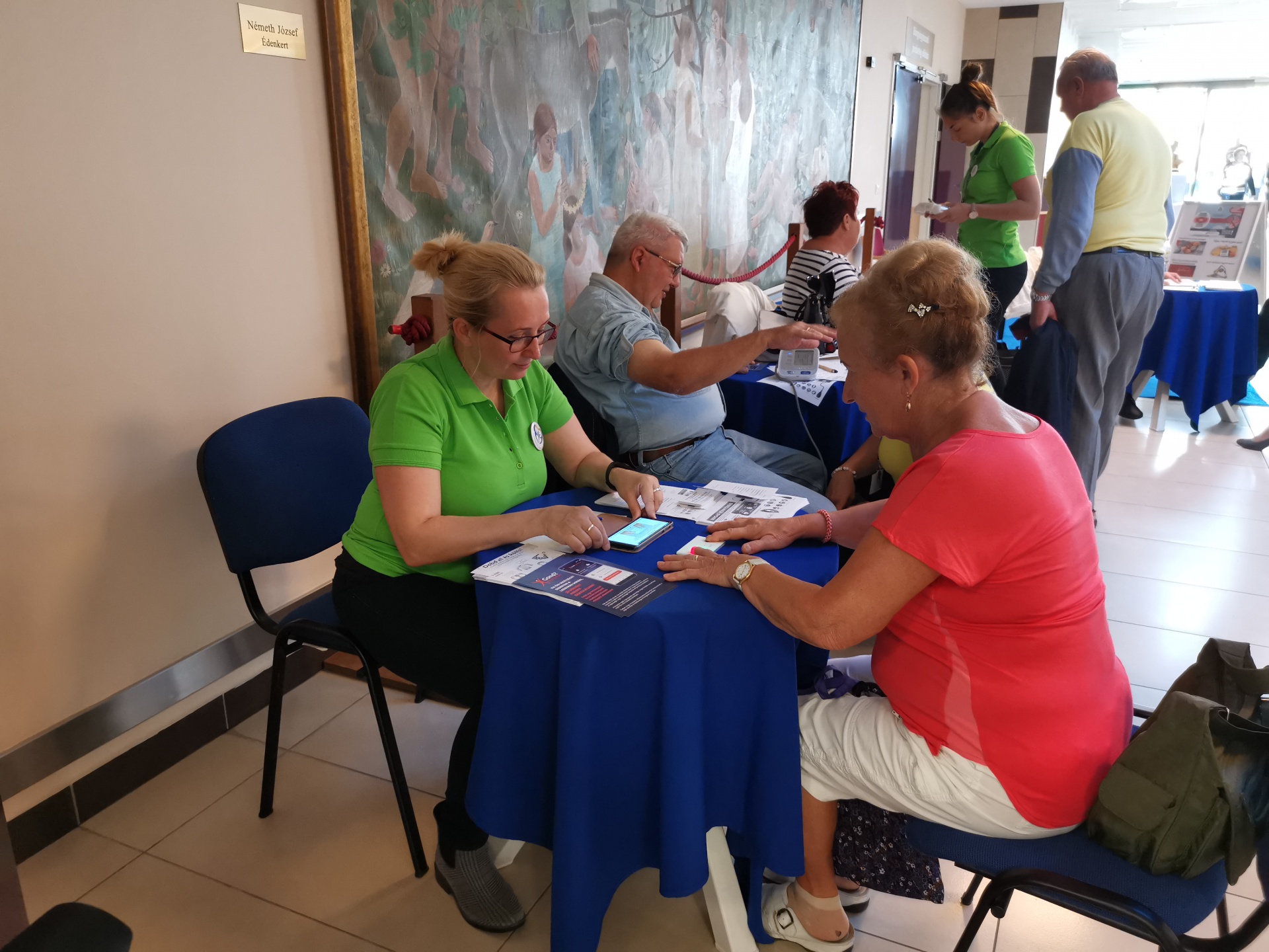 A kórház központi regisztrációs aulájában kardiológiai állapotfelmérést, tanácsadást, újraélesztés bemutatót és oktatást tartottak a szakemberek, de lehetőség volt megismerni a hemodinamikai labor működését is, ahol a szívkatéteres vizsgálatokat végzik.