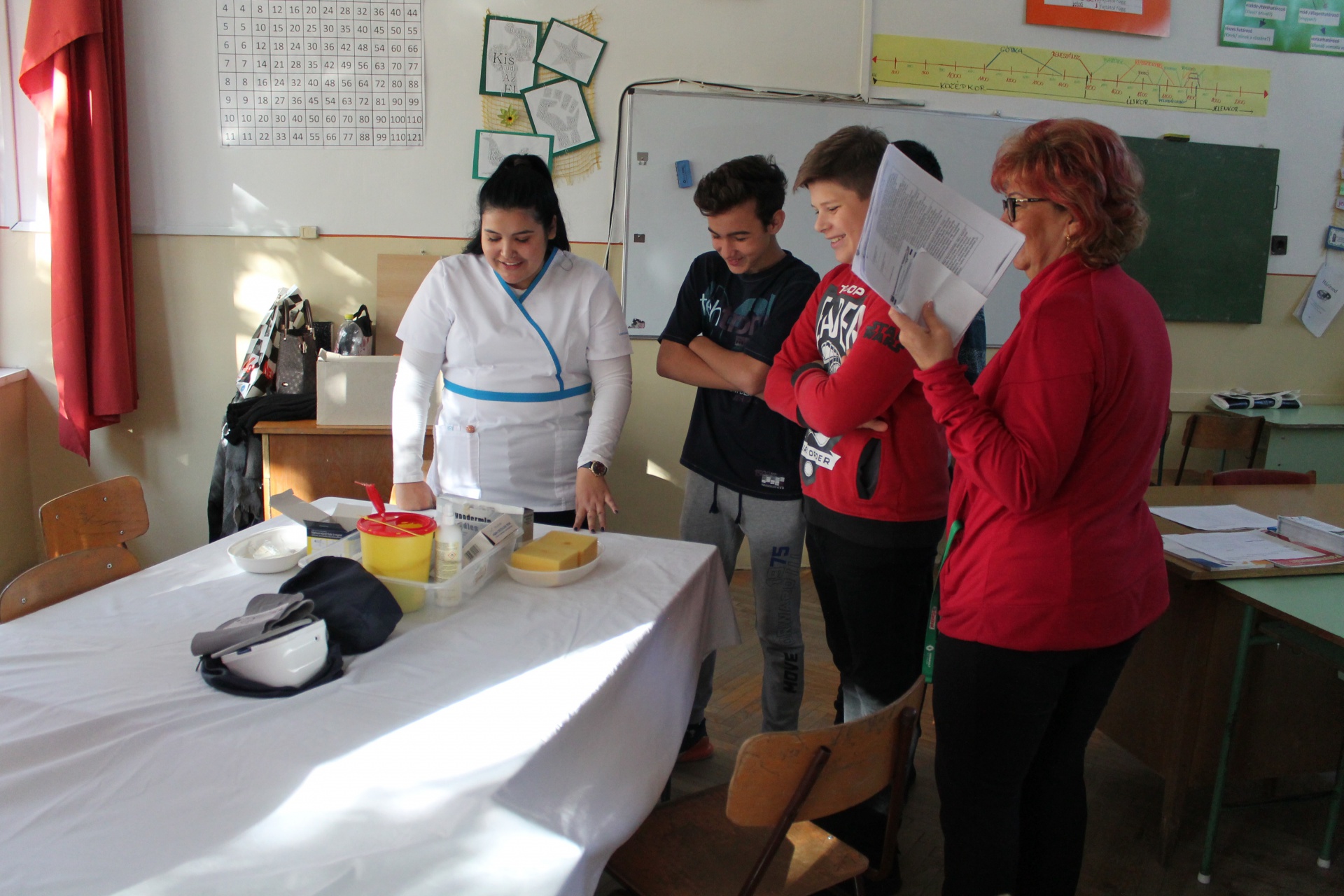 A Pécsi Tudományegyetem Szigeti-Gyula János Egészségügyi Szakgimnázium és Szakközépiskola képviselői elméletben és gyakorlatban is bemtatták az újraélesztés folyamatát, a vércukorszint és vérnyomásmérést, valamint a csecsemőgondozást is szemléltették.