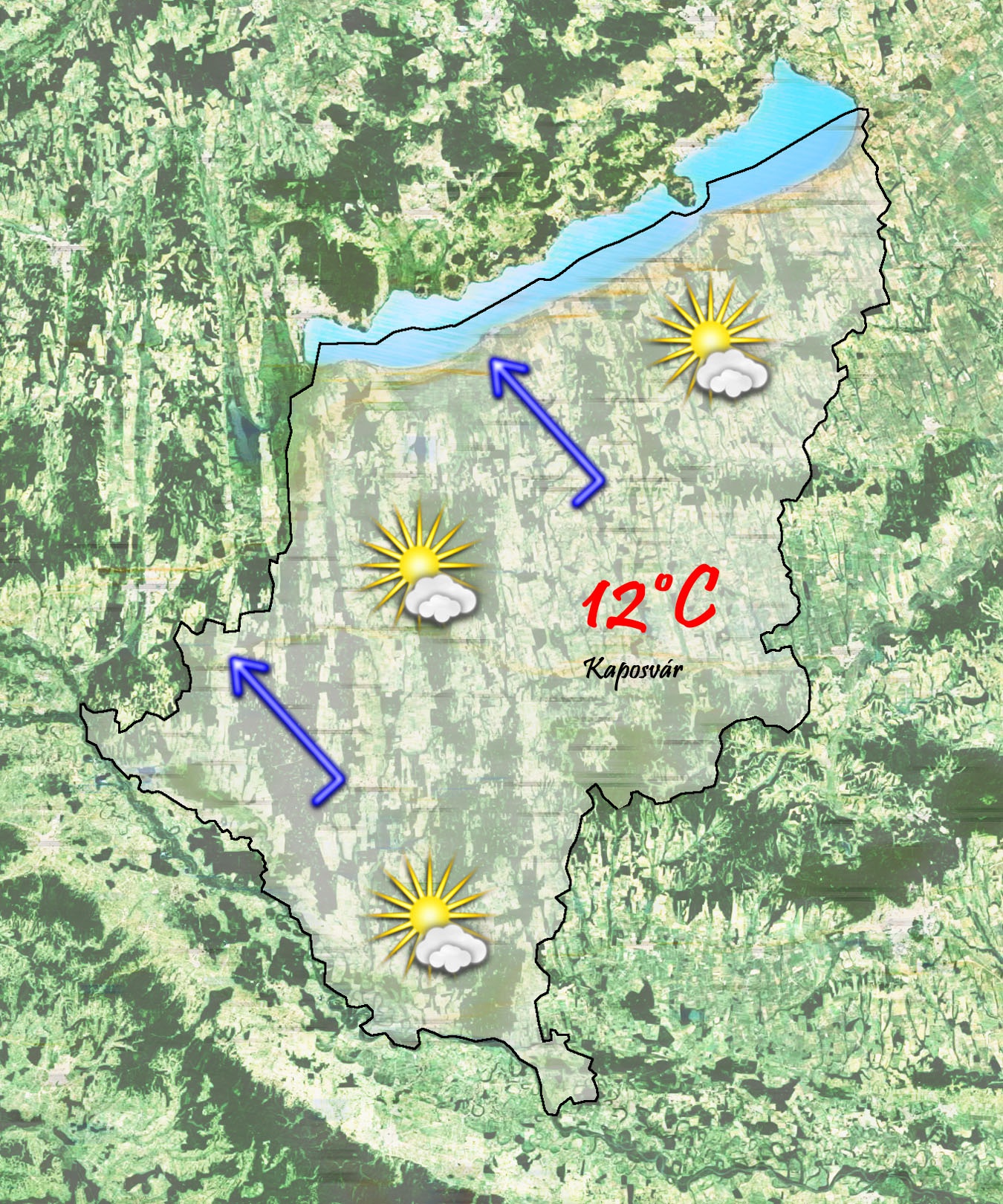 Ködös reggelek és napos délutánok váltják egymást. Középtávú előrejelzés Kaposvár és környékére.