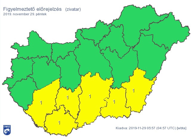 Zivatar miatt elsőfokú figyelmeztetést adott ki Somogy megyére az Országos Meteorológiai Szolgálat péntekre.