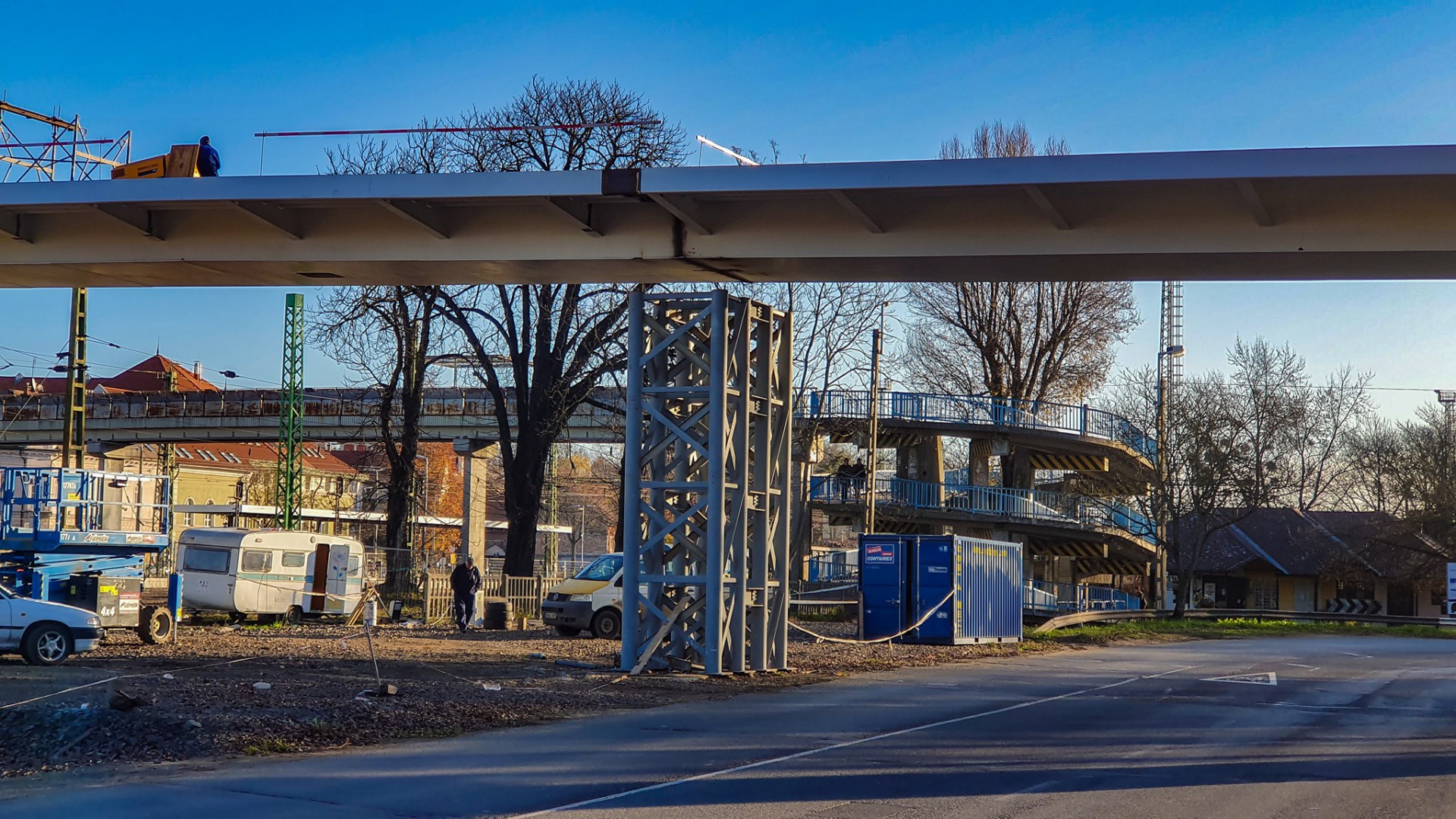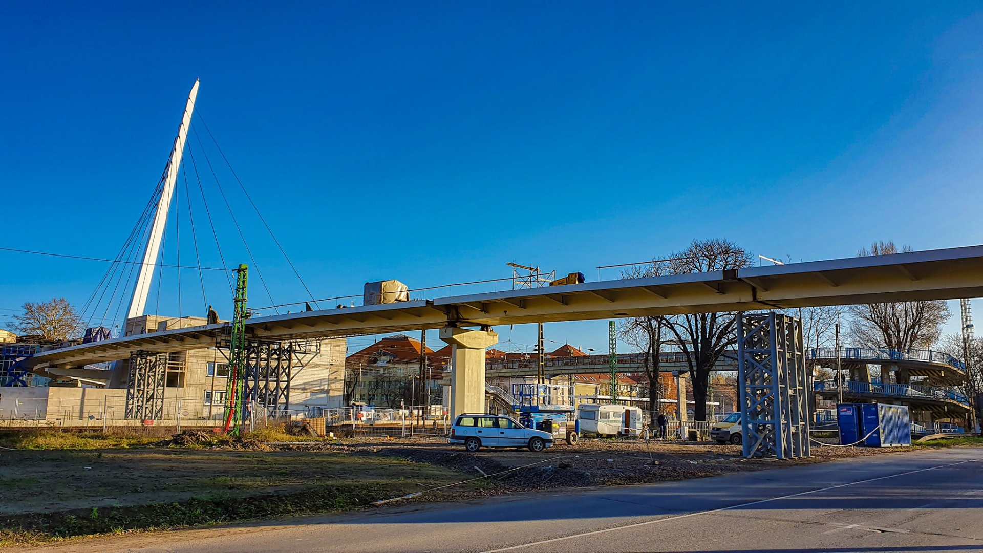 A feszítés eredményeként megemelkedett a donnerbe átívelő gyalogos és kerékpáros felüljáró, így az ideiglenes acéltámaszok hamarosan kikerülhetnek a helyükről. Videó hamarosan.