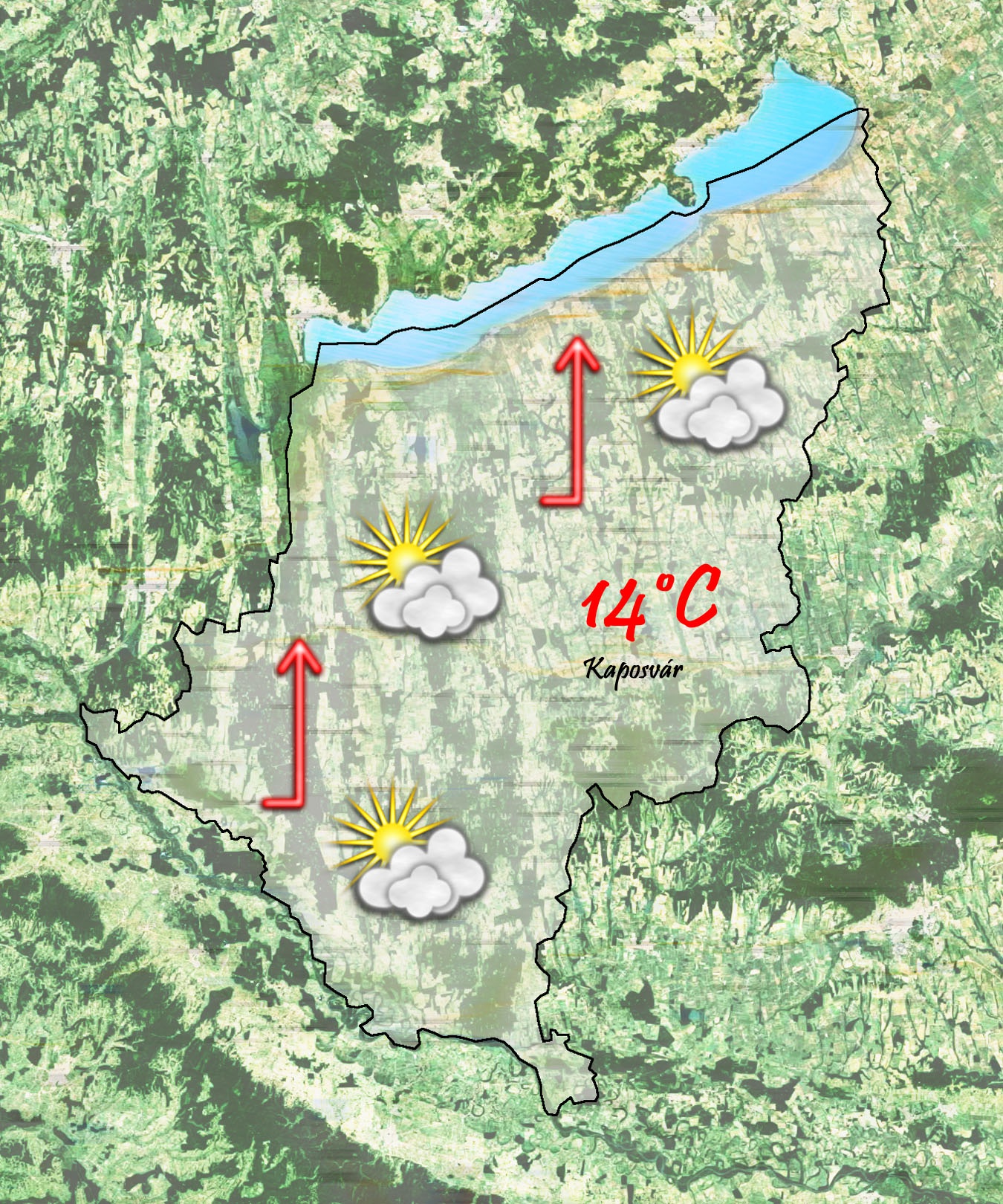 Kedd reggel csak 5°C-ig süllyed a hőmérséklet a közepesen fátyolfelhős ég alatt. Napközben kellemes koratavaszias idő várható csapadék nélkül. Délutánra 15°C-ig kúszik fel a hőmérő higanyszála a mérsékelten fújó délnyugati szél mellett.