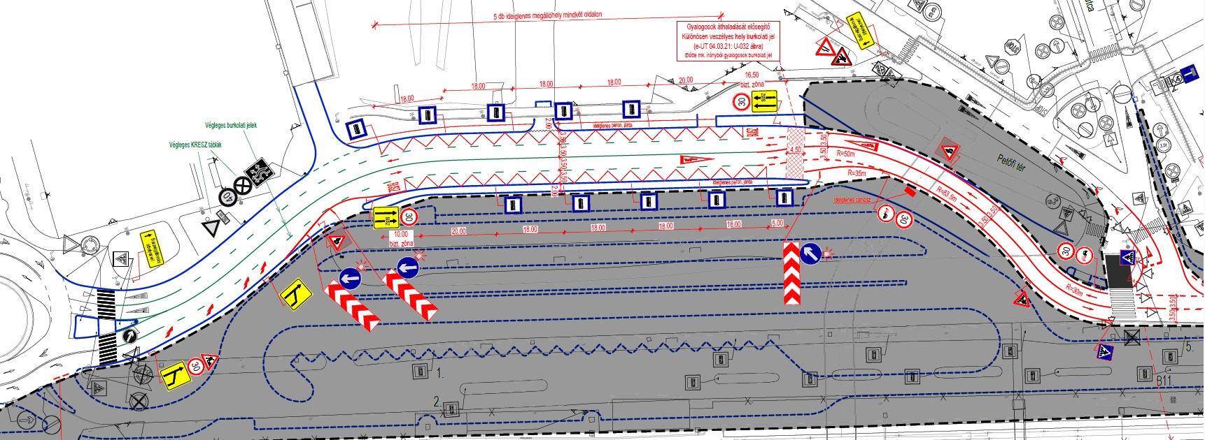 A közműkiváltással együtt járó munkálatokat csak a forgalmi rend megváltoztatásával lehet végrehajtani. A legfőbb változás, hogy