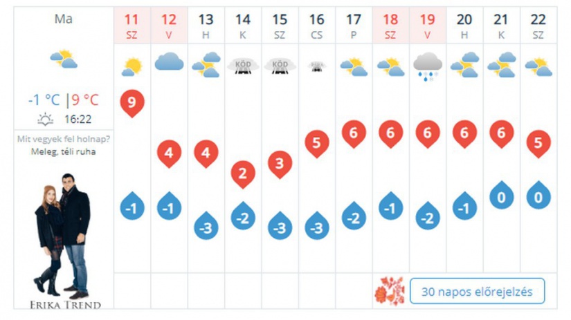 Vasárnap hidegebb reggelre ébredhetünk, még nagyobb szükségünk lesz a sapkára és a kesztyűre, mint szombaton. Éjszaka erőteljesen lehül a levegő, ezt követően hajnalban és a kora délelőtti órákban többfelé ködre kell számítani. Délutánra teljesen kitisztul az ég és a nap is megcsillogtatja a sugarait, a legmelegebb órákban 4 és 5 fok közé emelkedhet a hőmérő higanyszála.
