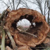 A kivágott nyárfának nincs belseje, lényegében életveszélyes volt, amíg állt. A többi fotón is jól látszik, hogy még a vastagabb ágak közepén is jelentős a korhadás.