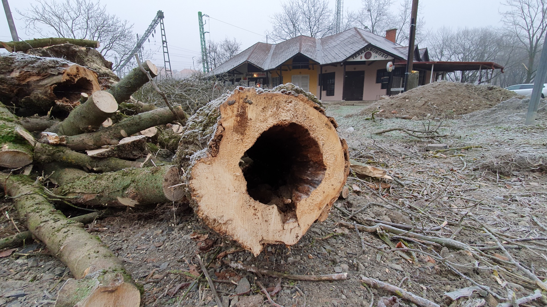 Ha egy ekkora fa kidől, komoly károkat tud okozni. 2018-ban Dombóváron egy autóban négyen, köztük egy öthónapos csecsemő vesztette életét, amikor menet közben rájuk dőlt egy elkorhadt törzsű fa.