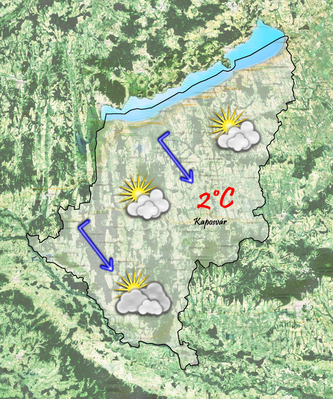 Kedd reggel -2 °C-ig süllyed a hőmérséklet a borult, ködös ég alatt. Napközben sokfelé ködös, erősen felhős idő várható. Délutánra 4 °C-ig kúszik fel a hőmérő higanyszála a gyengén fújó délnyugati szél mellett.