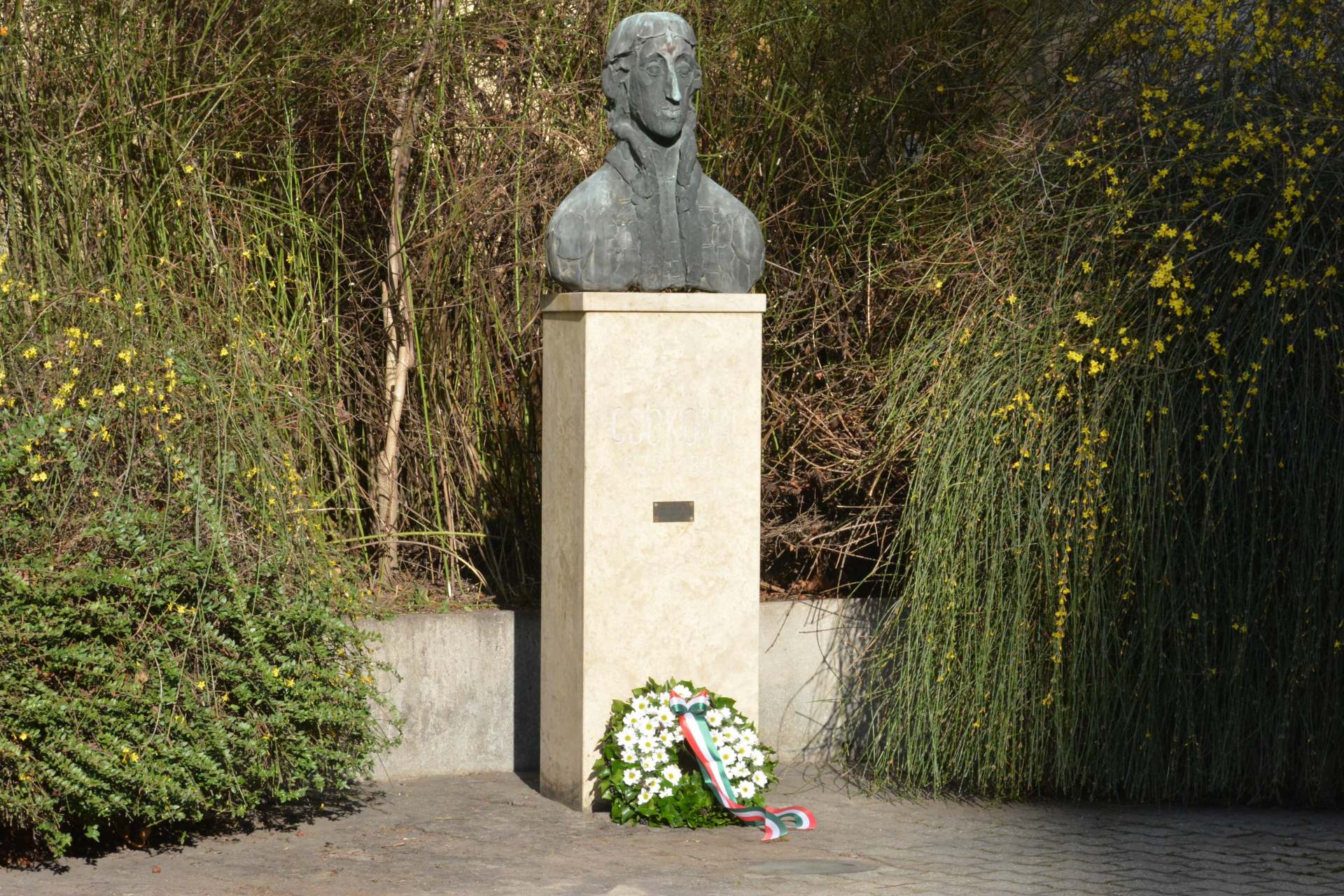 A koszorút az Együd Árpád Kulturális Központ igazgatója, Szalay Lilla és Karpov András, az intézmény munkatársa helyezte el a szobornál.