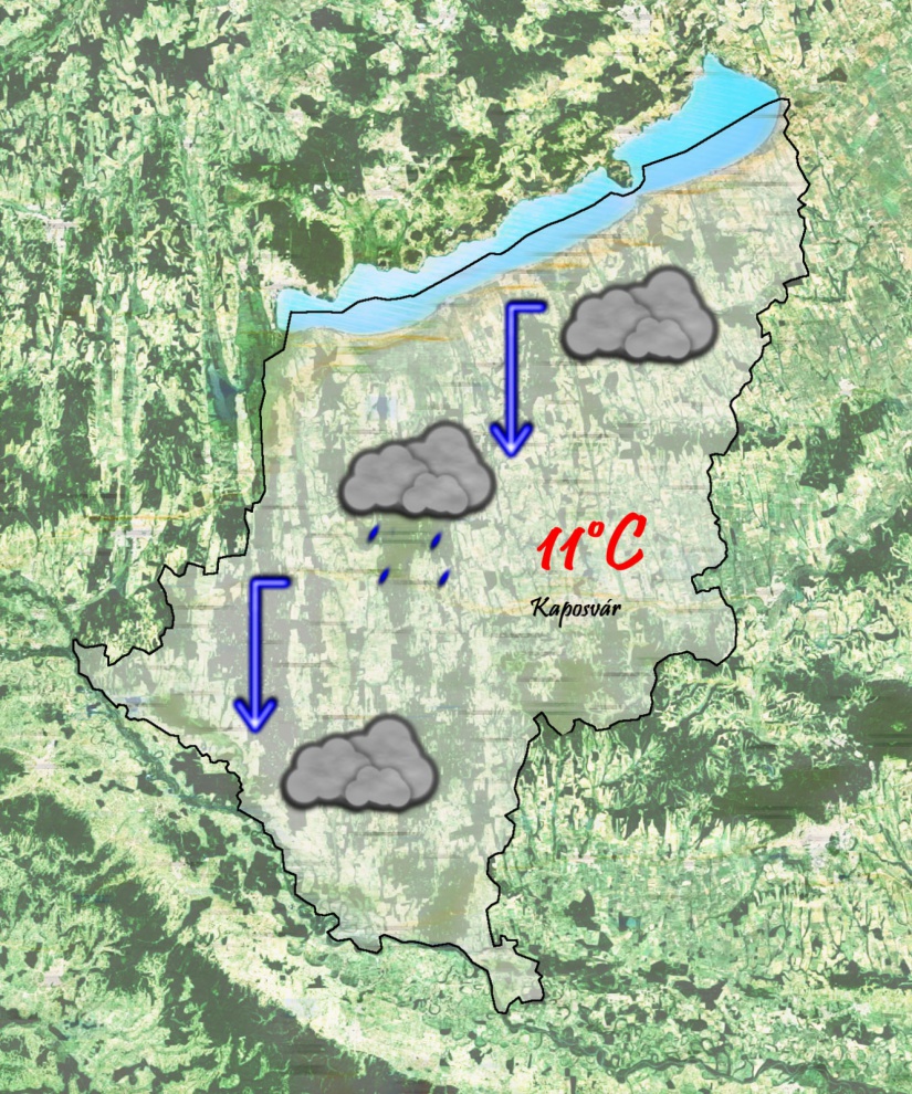 Péntek napközben a hidegfront hatására megélénkül az északi szél és egyre többfelé lehet kisebb eső, zápor. 12°C-ig emelkedik a hőmérséklet.