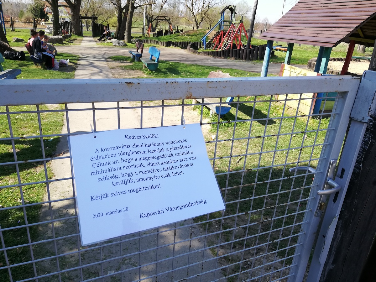 A mai naptól deiglenesen lezárjuk a játszótereket. Első körben azokat, amelyeket kerítés vesz körbe, s ahol a legtöbben fordulnak meg. Kérjük, gyermekeiket ne vigyék közösségbe!