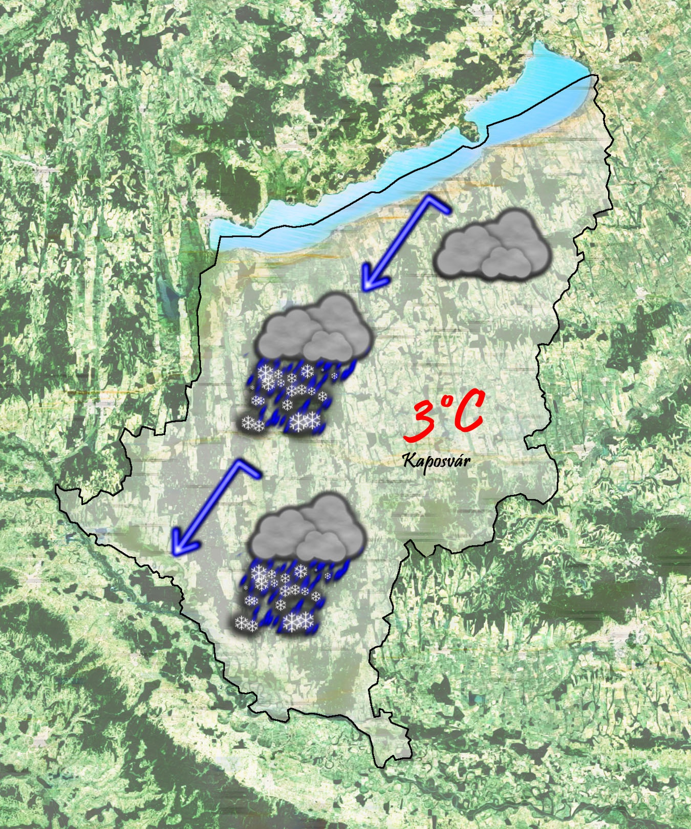 Szerdán napközben borult lesz az ég és többfelé lehet eleinte havazás, majd a délután folyamán havaseső, eső. 3°C-ig melegszik a levegő. Gyenge északkeleti szél fog fújni. Még télies idő várható.