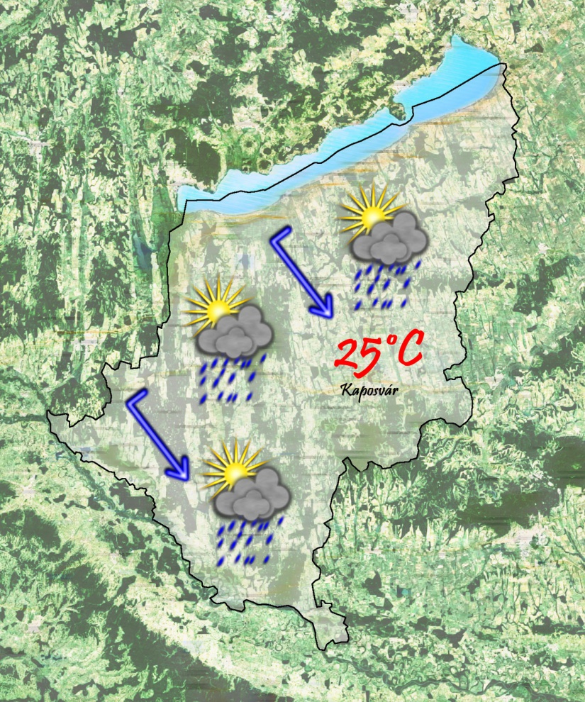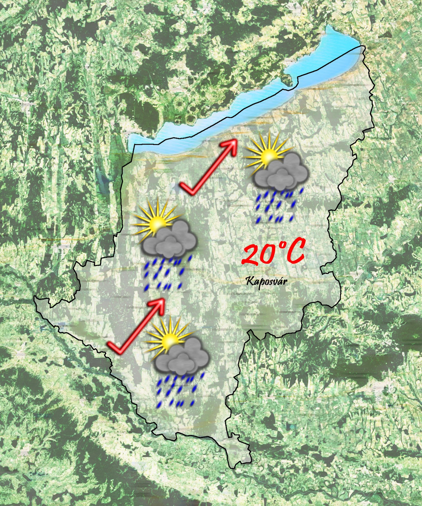 Szerdán az enyhe reggel után napközben eleinte közepesen felhős lesz az ég, majd a megnövekvő gomolyfelhőzetből sokfelé lehet zápor, zivatar. 20°C-ig melegszik a levegő. Gyenge délnyugati szél fog fújni.