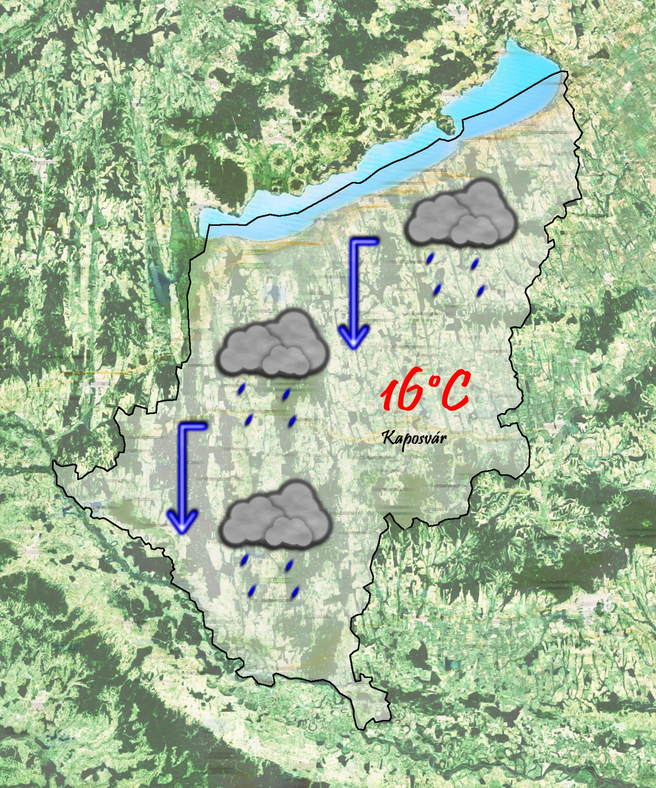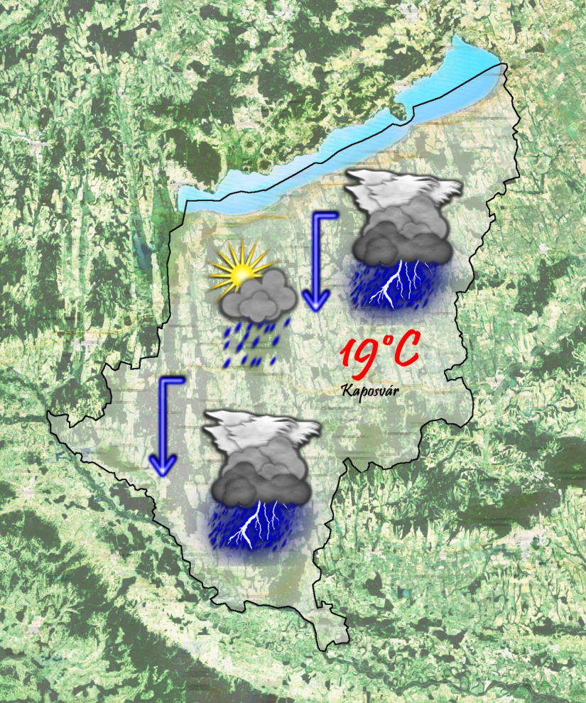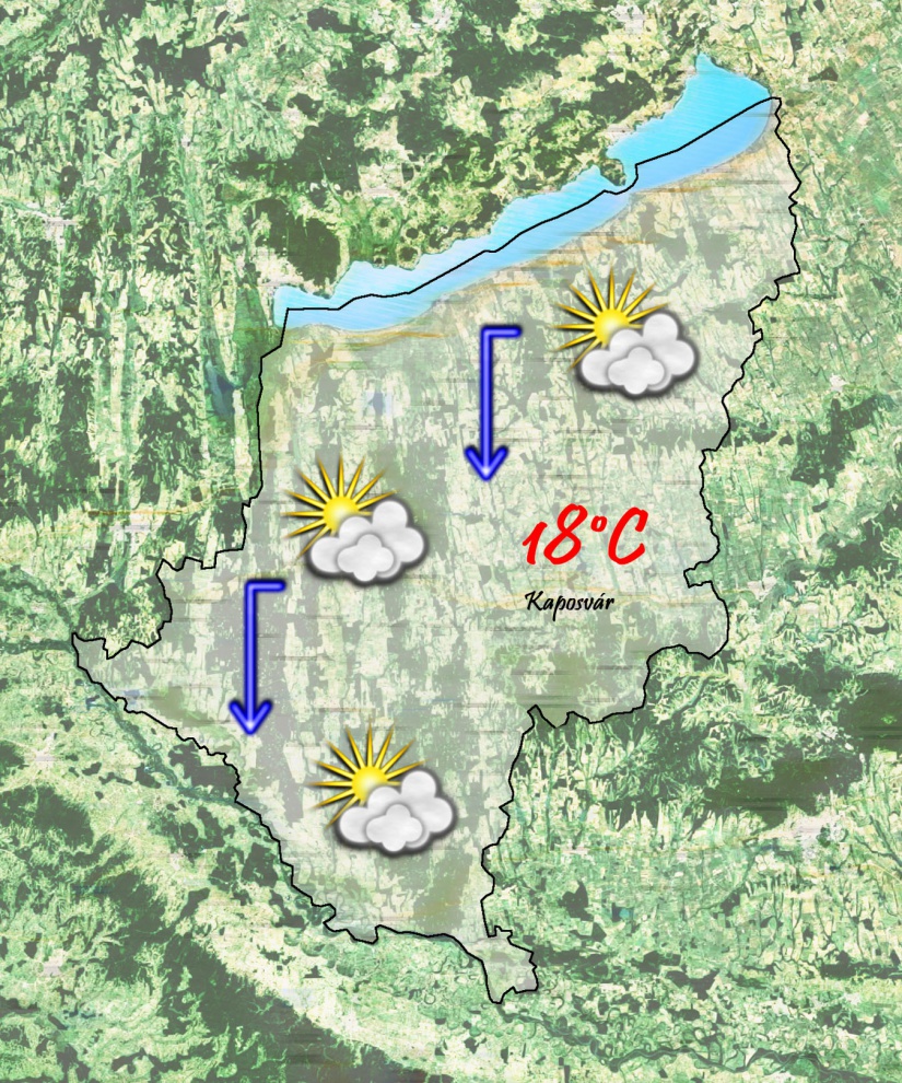 Péntek napközben erősen felhős idő várható. 19 °C-ig emelkedik a hőmérséklet a gyenge északi szél mellett. Többfelé várható zápor, akár zivatar a nap folyamán. Néhol felhőszakadás, jégeső sem kizárt.