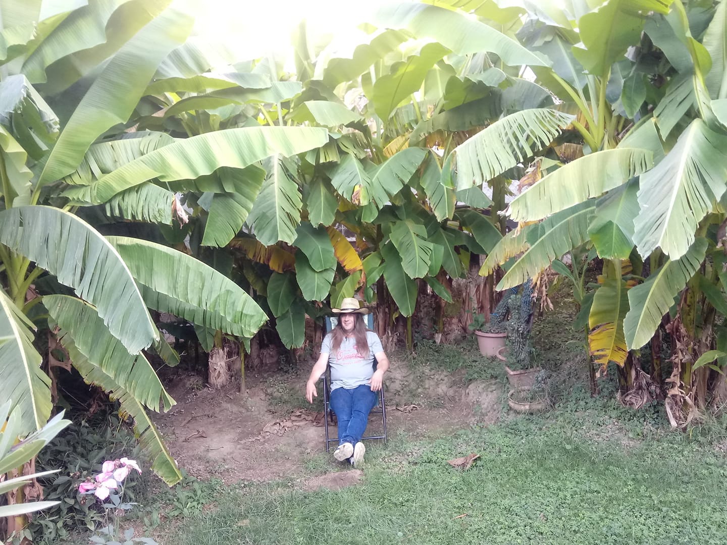 Banánliget a Cserben, kitakarták, nő, virágzik. Mintegy 150 banánfa nő az egyik családi ház udvarán, nyár végére szinte erdőt alkot, kellemes árnyékot biztosítva a lakóknak.