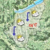 Vasárnap reggel még erősen felhős lesz az ég majd szépen lassan nyugat felől felszakadozik a felhőzet. 12°C-ig süllyed a levegő hőmérséklete. Napközben közepesen felhős égbolt mellett már csak 24°C várható. Marad az északnyugati szél de már csak gyengén fog fújni.