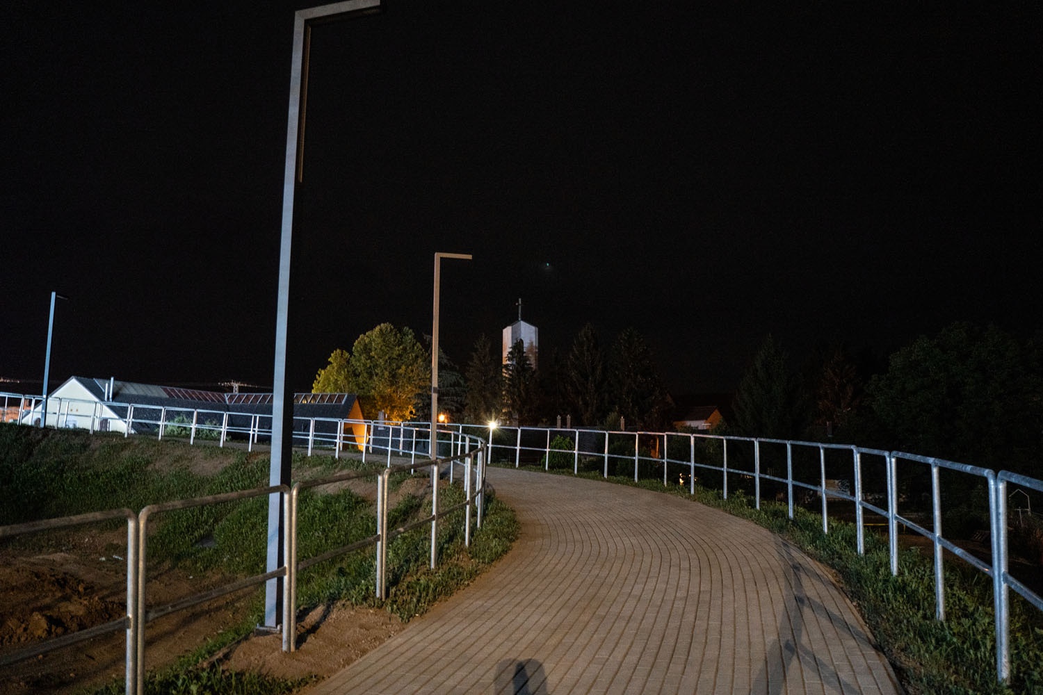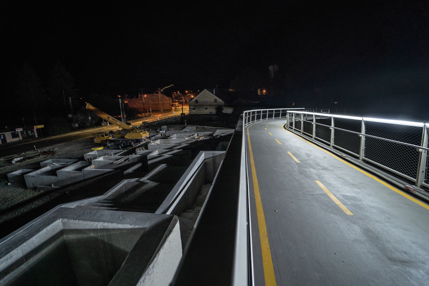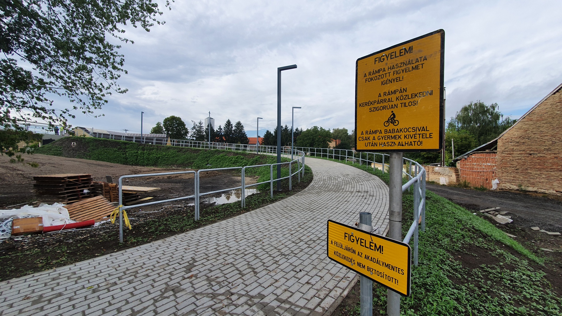 Hétfőn elbontották az ideiglenes lépcsőt a donneri oldalon, így a gyalogos forgalmat a hídra felvezető kerékpáros rámpára terelte a kivitelező.