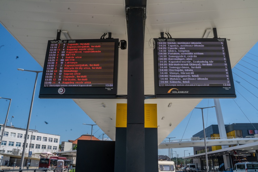 Működnek a ledfalak és a hangszórókon már az induló járatok időpontjait lehet hallani a Kaposvári Közlekedési Központ peronjain sétálva.