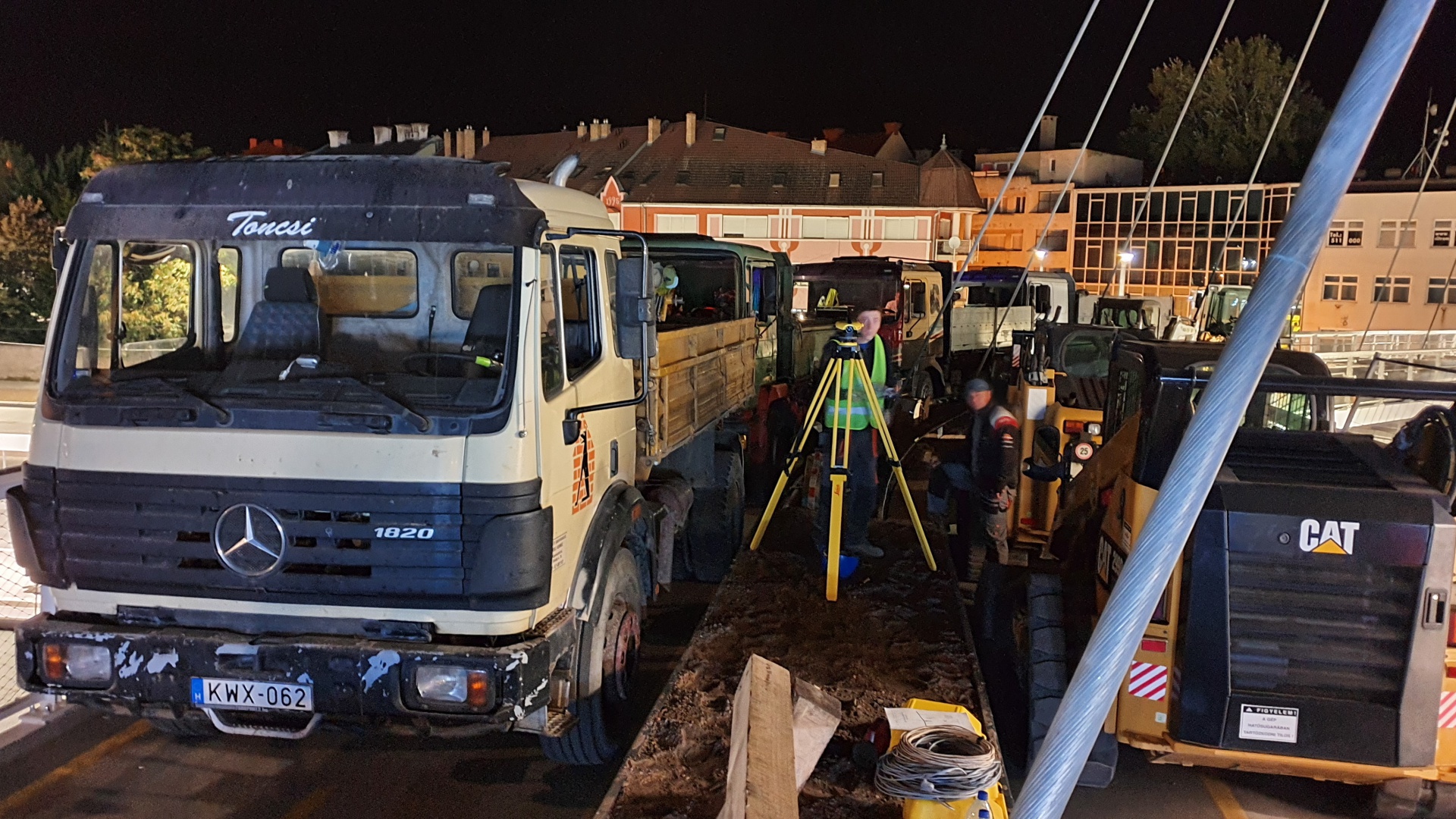 A további négy teherautót csak daru segítségével lehetett a pályatestre helyezni.