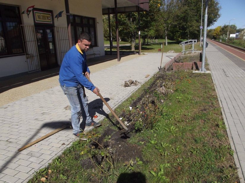 Jelenleg a szegélyezés munkálatai zajlanak, amit régi peronlapokból oldottak meg. Mindaddig Petronella az épület mögötti ágyást beültette.