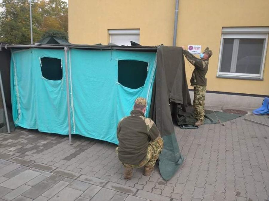 Az alakulat október 16-án telepítette a sátrat, hozzá asztalt, székeket és egy elektromos sátorfűtő berendezést. A harkányi centrum előtti sátor segíti a veszélyhelyzet járványügyi protokolljainak elvégzését és betartását.